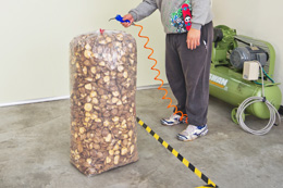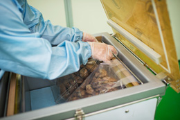 人員依規定穿著無塵衣進行挑選、包裝 (磅秤每年定期委外校正)。